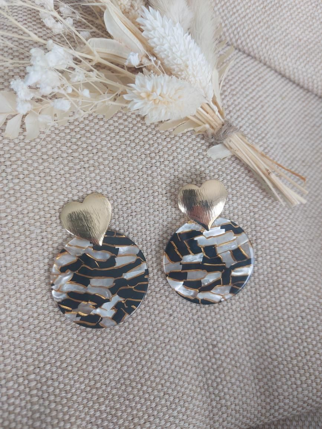 Boucles d'oreilles en acrylique et laiton doré à l'or fin.
