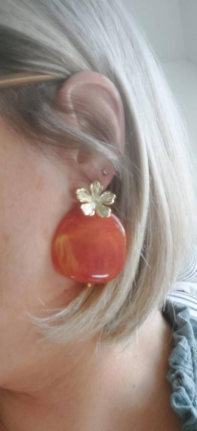 Boucles d'oreilles dorées à l'or fin et acrylique