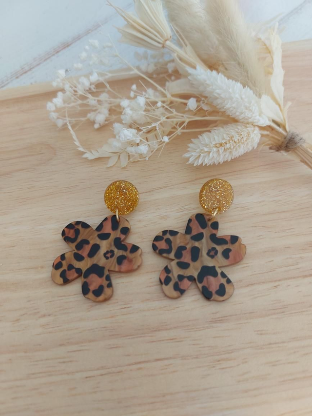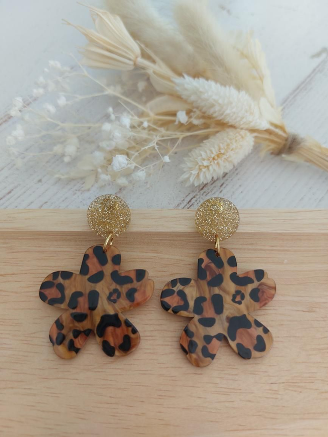 Boucles d'oreilles fantaisie pendantes en forme de fleur au motif léopard 🐆